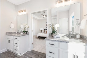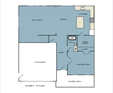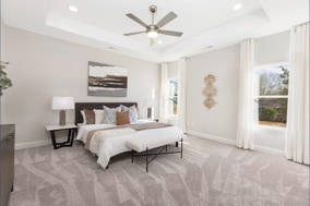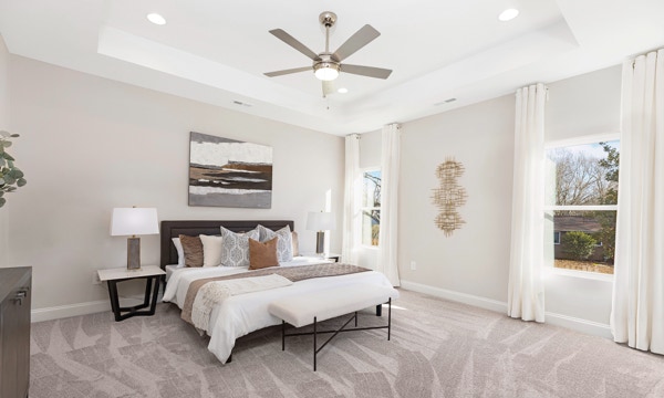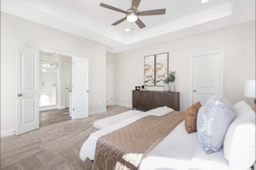 Open and spacious transitional 2-story home featuring a kitchen and dining area. Large great room leads to a hidden rear stairway to 4 bedrooms and 2 full bathrooms upstairs. The 4th bedroom is large enough to also double as a nice bonus room. Office on the main level has a connecting full bath & a walk-in closet, so it could also be used as a guest suite. The large primary suite features a tray ceiling and opens through elegant twin doors to a large adjoining bath with twin vanities.