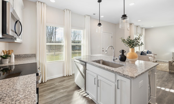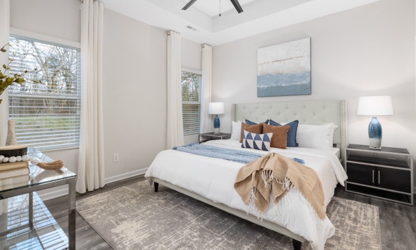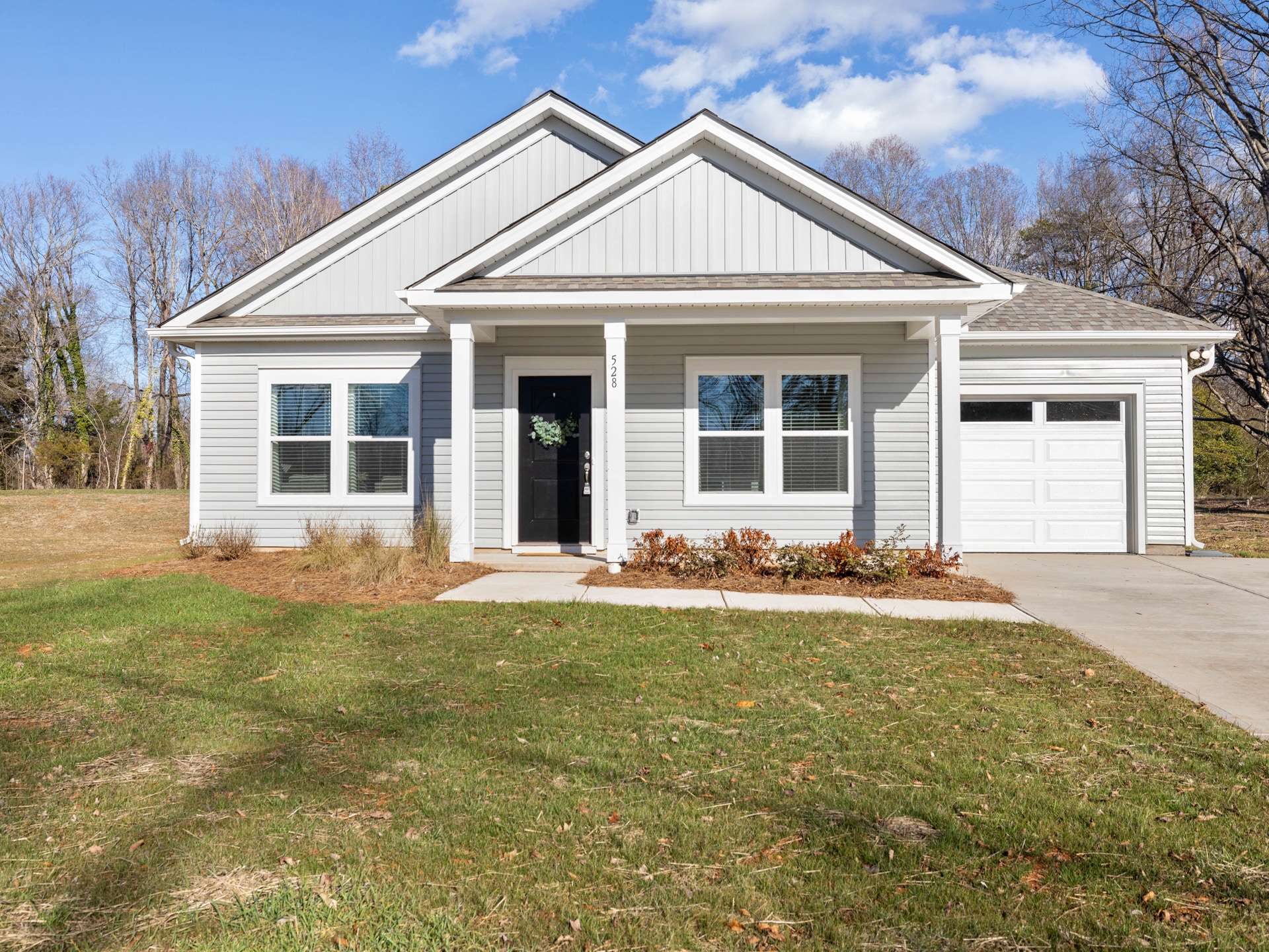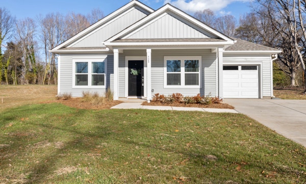 This lovely ranch-style home boasts three bedrooms and two bathrooms, featuring a contemporary open-concept design. The kitchen is adorned with a striking island complemented by sleek solid surface countertops, complete with soft-closed doors and drawers and charming pendant lighting. The luxurious on-suite bathroom features an elegant tile shower surround, while the secondary bathroom offers a generously sized double bowl vanity, both finished with stunning tile surround accents. The primary bedroom also features a beautiful oversized ceiling fan for added comfort and style. The entire home is complete with custom window blinds, providing privacy and a sleek finishing touch.
