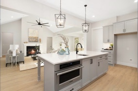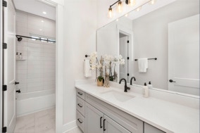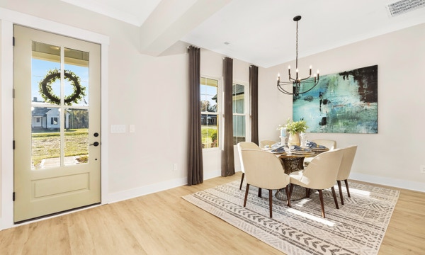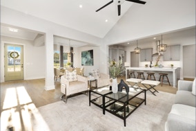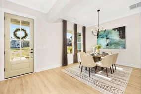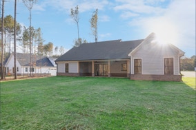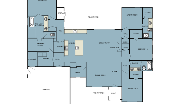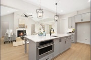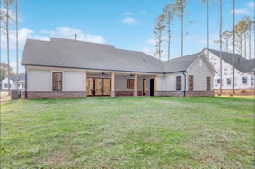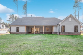 Lovely, warm & inviting modern farmhouse done in a classic light gray. Open single-level home featuring 4 Bedrooms, and a flex office. Featuring front & rear covered porches. An oversized 2-Car Garage provides for dedicated storage space. White perimeter kitchen cabinets with contrasting island, quartz countertops. Cozy & comfortable fireplace in great room. LVP flooring throughout with tile floors in all baths & laundry. Modern Farmhouse-style interior trim with solid core doors.