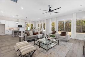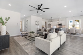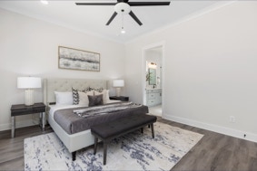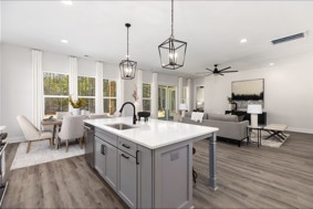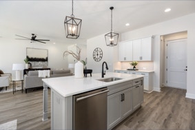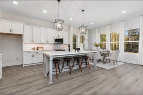 Charming Modern Farmhouse design. Open ranch-style home with an upstairs level as well. The home features 3 bedrooms on the main level, and one upstairs. The primary suite is on the main level. A large bonus room is also located separately upstairs along with an additional full bath. White perimeter kitchen cabinets with contrasting island, both featuring white marble-like quartz countertops. Stainless steel appliances in the large and open kitchen. LVP flooring throughout, except for tile floors in all baths & laundry. Modern Farmhouse-style interior trim with 8 ft. doors on the main level! This home also features the efficiency and piece of mind of having been built using foam insulation. Decorator-inspired style, as well as custom built craftsmanship & efficiency.